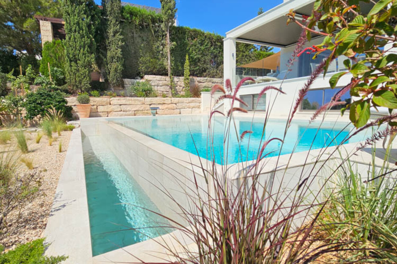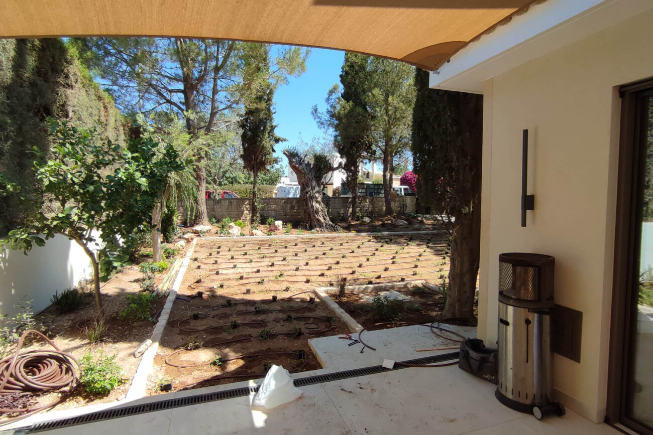 A bespoke garden was created to harmonize with the property’s character and natural surroundings. The design incorporates carefully curated plantings, thoughtful layouts, and personalized elements to achieve a balance of aesthetic beauty and practical functionality. At the client’s request, an 800-year-old olive tree was prominently featured, serving as a striking centerpiece and a symbol of timeless elegance. The result is a serene and inviting outdoor space, tailored to provide year-round appeal and effortless maintenance.