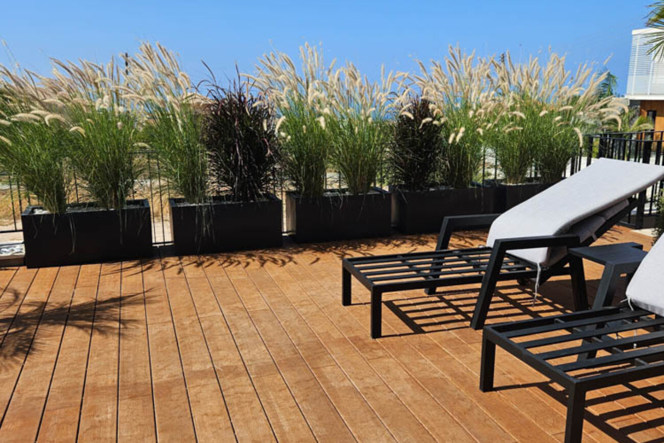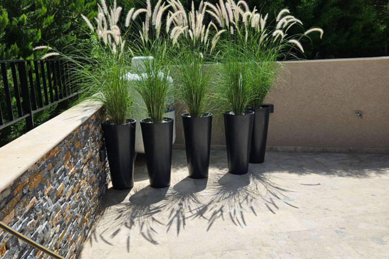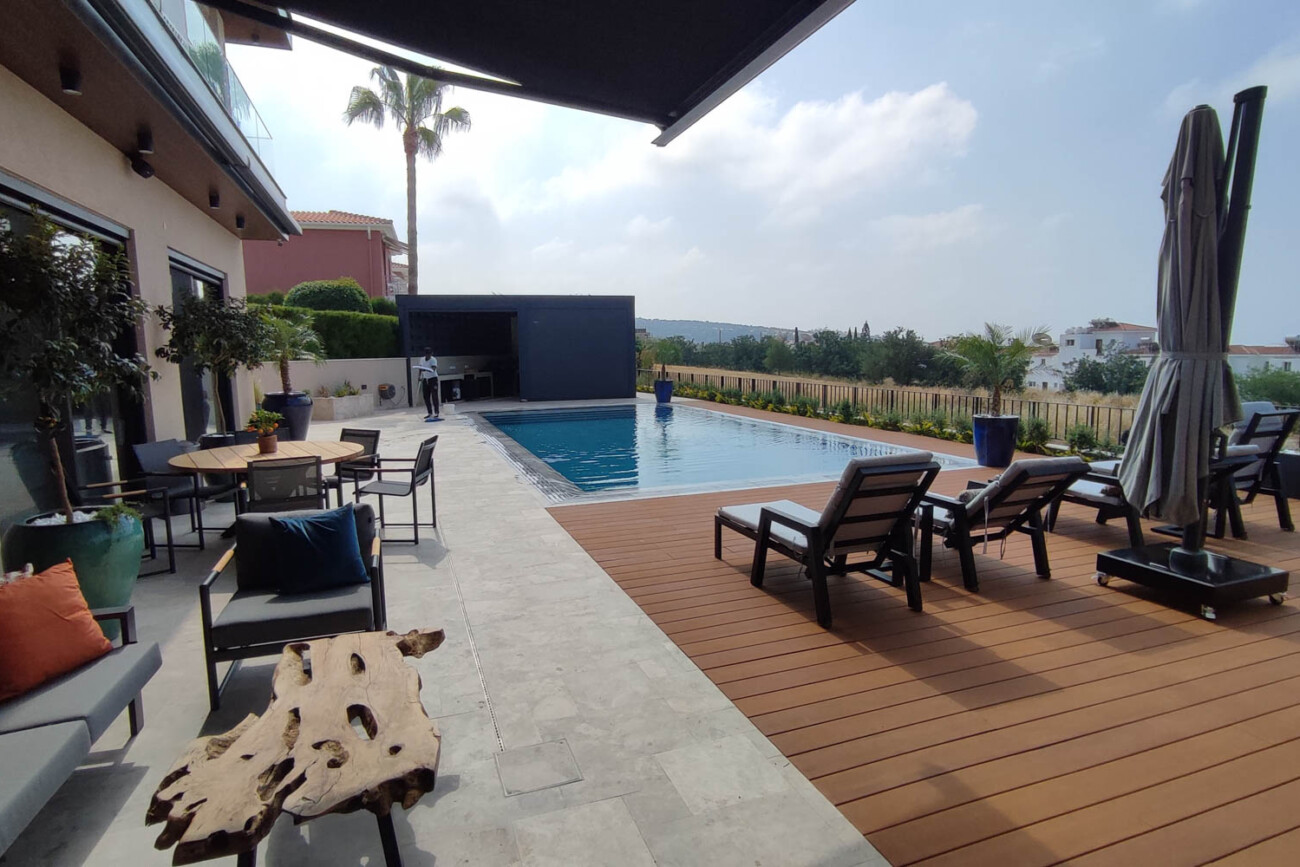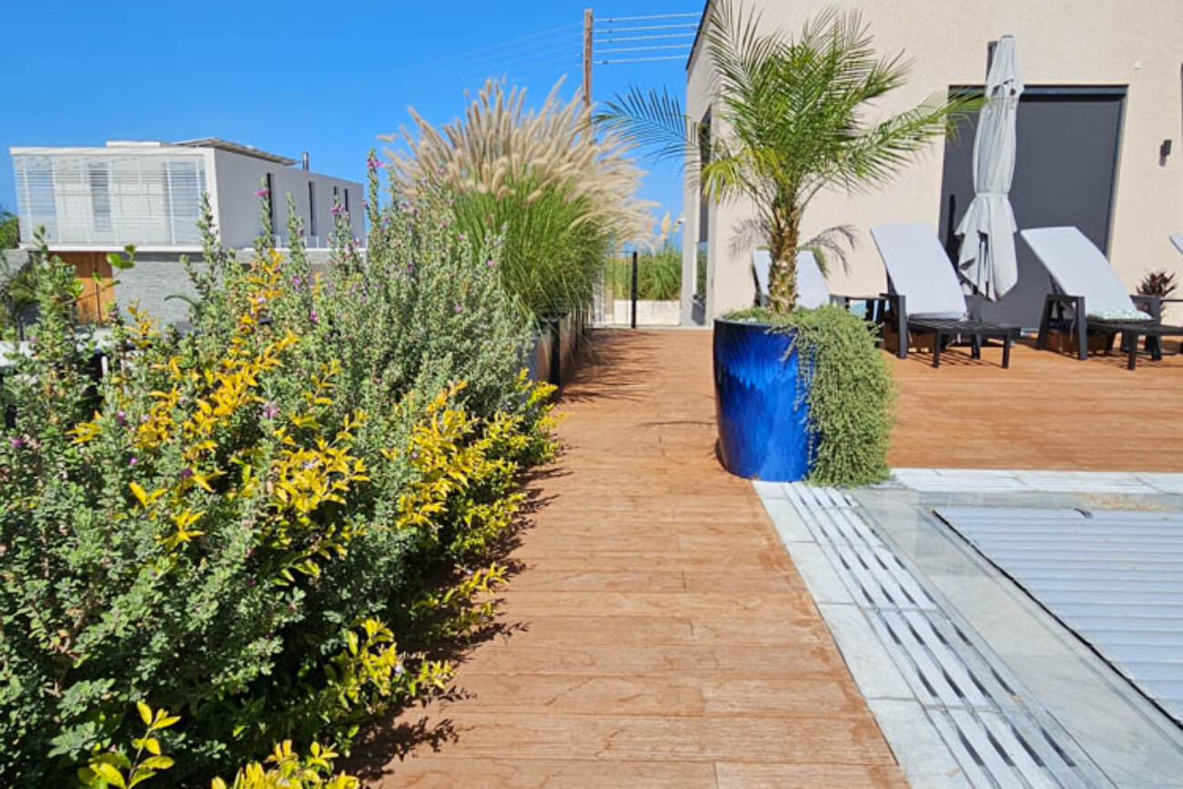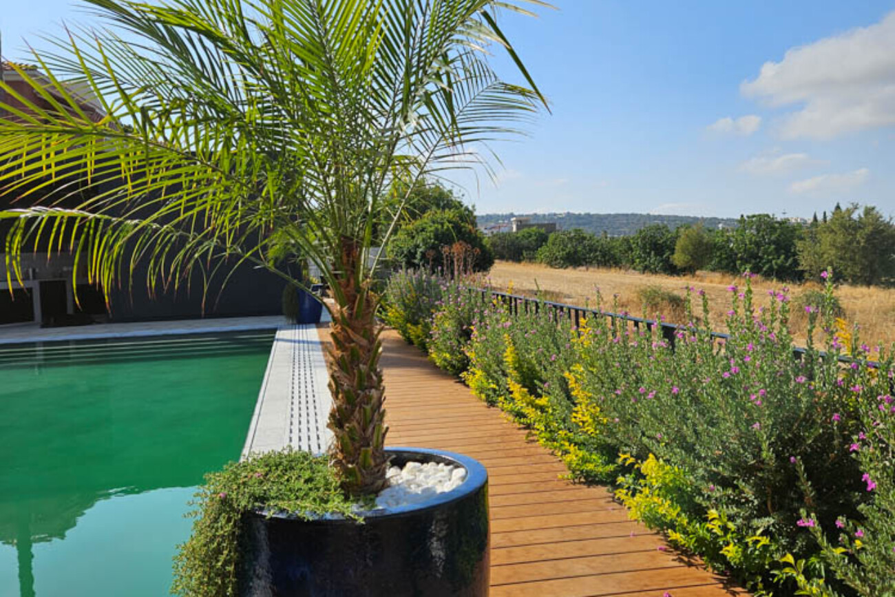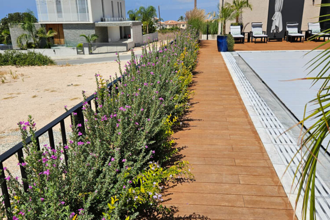 A distinctive garden was designed to enhance the property’s unique style and atmosphere. The layout combines a variety of plant species to create depth and visual interest, while carefully planned pathways and focal points ensure a seamless flow throughout the space. Emphasis was placed on blending natural beauty with functionality, resulting in an outdoor environment that is both inviting and enduring. The design also includes a petanque pitch and a basketball court, thoughtfully integrated to provide recreational opportunities without compromising the garden’s aesthetic appeal.
