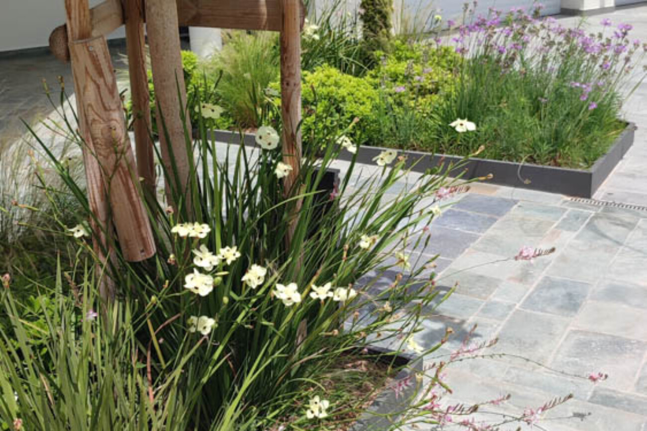 A contemporary garden was crafted to align with the iconic design of The Star, offering a blend of sophistication and natural beauty. The landscape incorporates striking plant arrangements and thoughtfully designed spaces to enhance functionality and visual impact. The result is a dynamic outdoor environment that complements the property’s architectural style while providing a serene setting for relaxation and enjoyment.